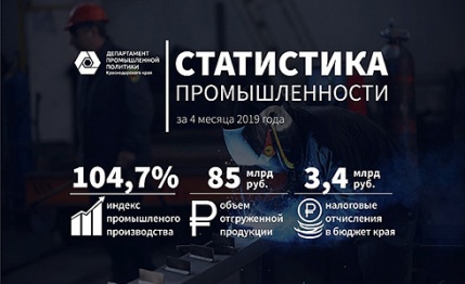 Объемы промышленного производства на Кубани увеличились за год на 4,7%
