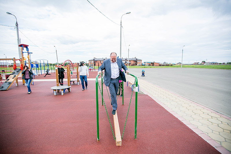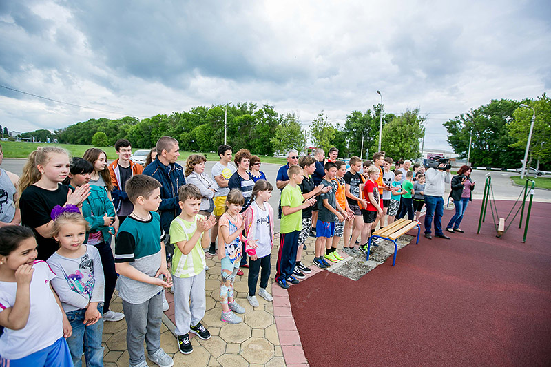 На открытии присутствовал глава района Валерий Спичка, он лично оценил качество сборки элементов и пообщался с первыми посетителями площадок. Руководитель муниципалитета пожелал ребятам успехов, здоровья, спортивных побед и выразил надежду, что эти площадки помогут этих побед достигнуть.